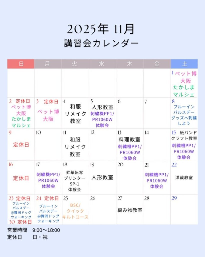 近畿ブラザーでは11月も多彩な講習会を開催いたします。